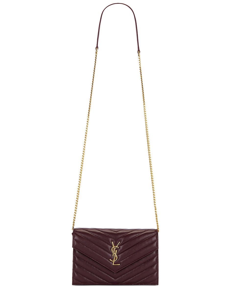 • Detachable gold-tone chain shoulder strap with leather reinforcement