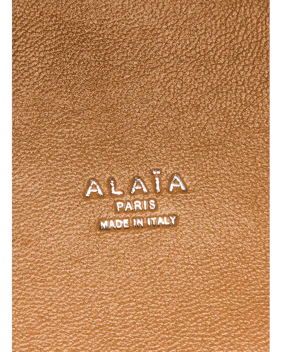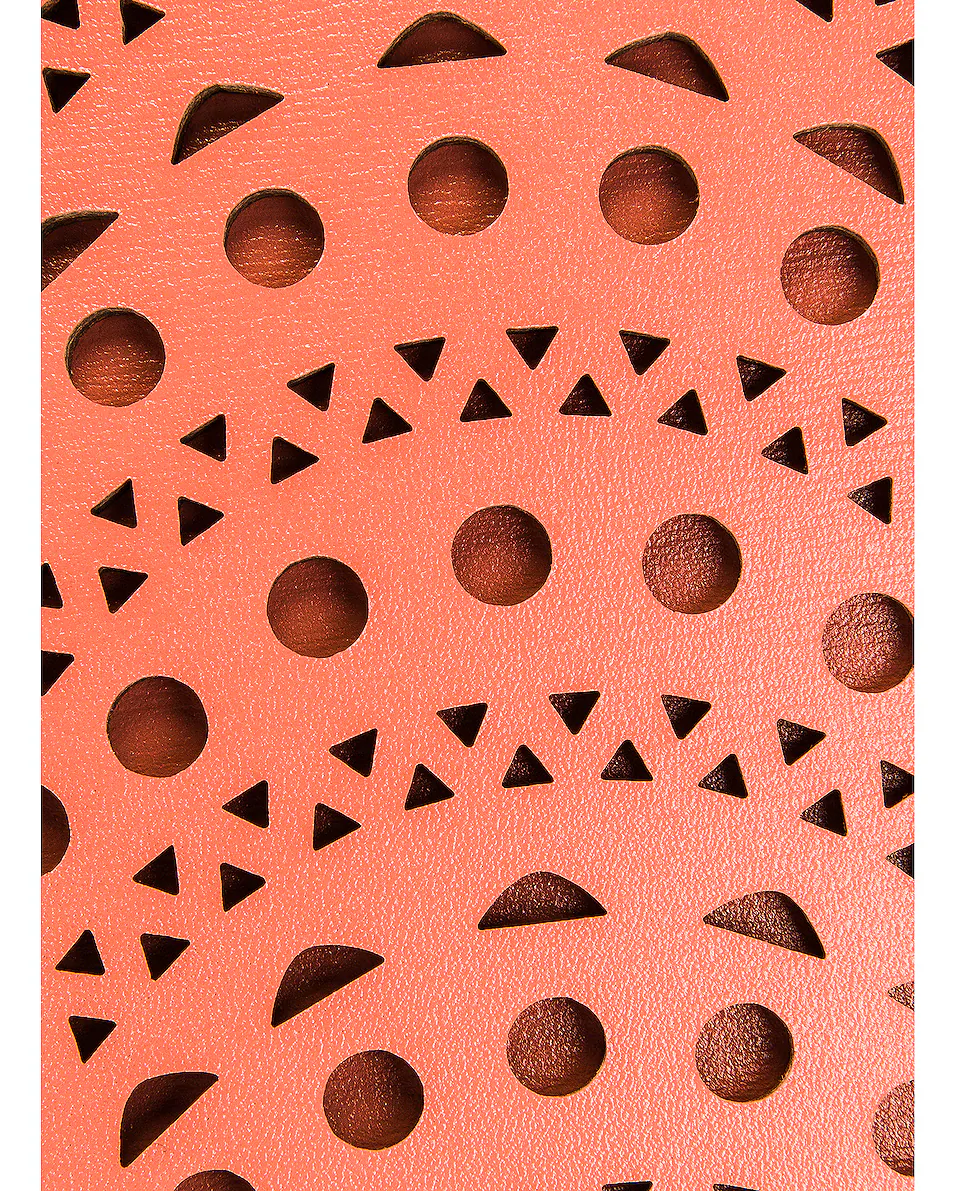 - Perforated leather exterior and lining with gunmetal-tone hardware