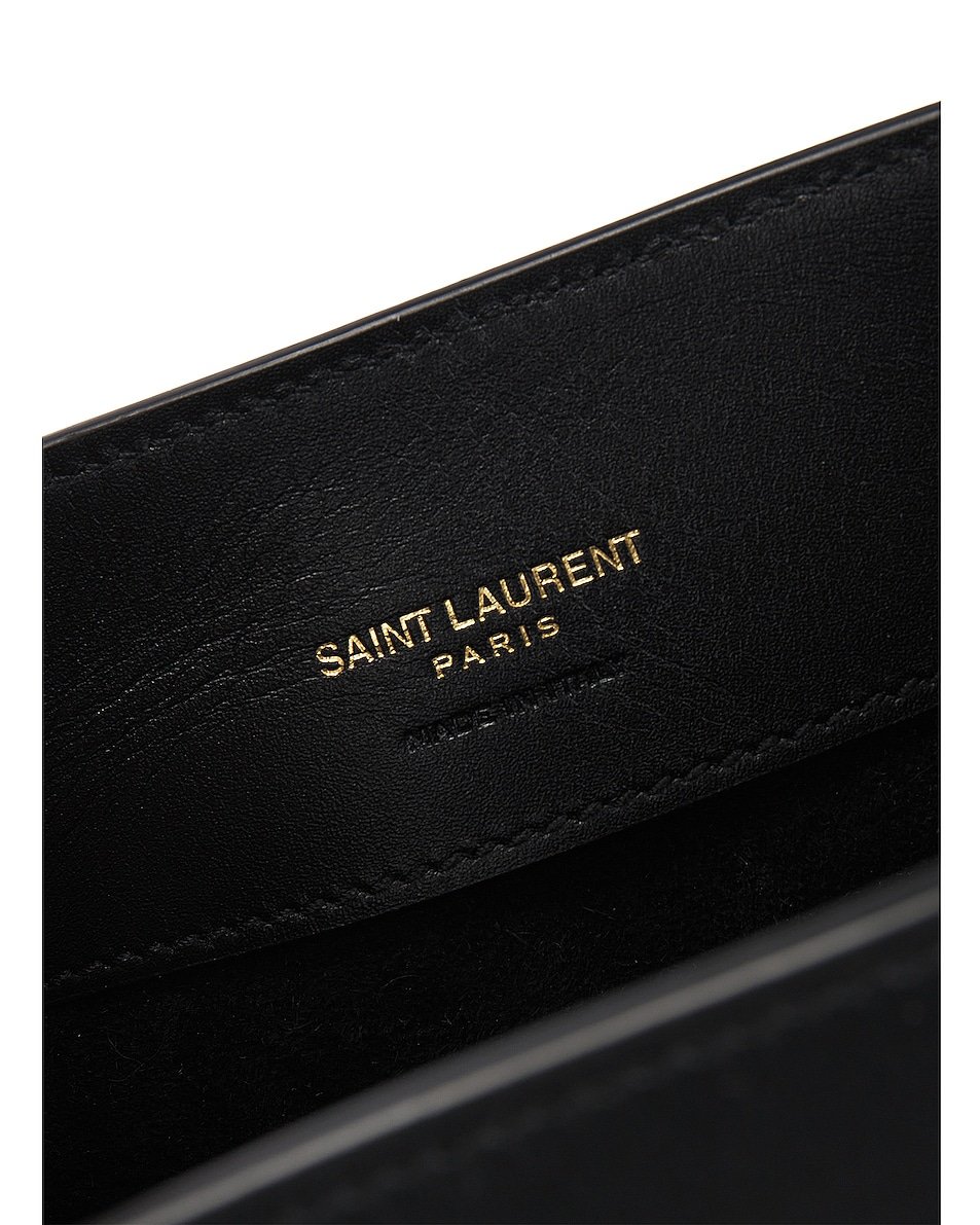 - Foldover leather strap with gold-tone Cassandre hook closure