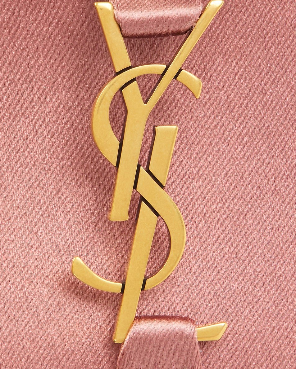 - Foldover top strap with gold-tone cassandre hook and loop closure