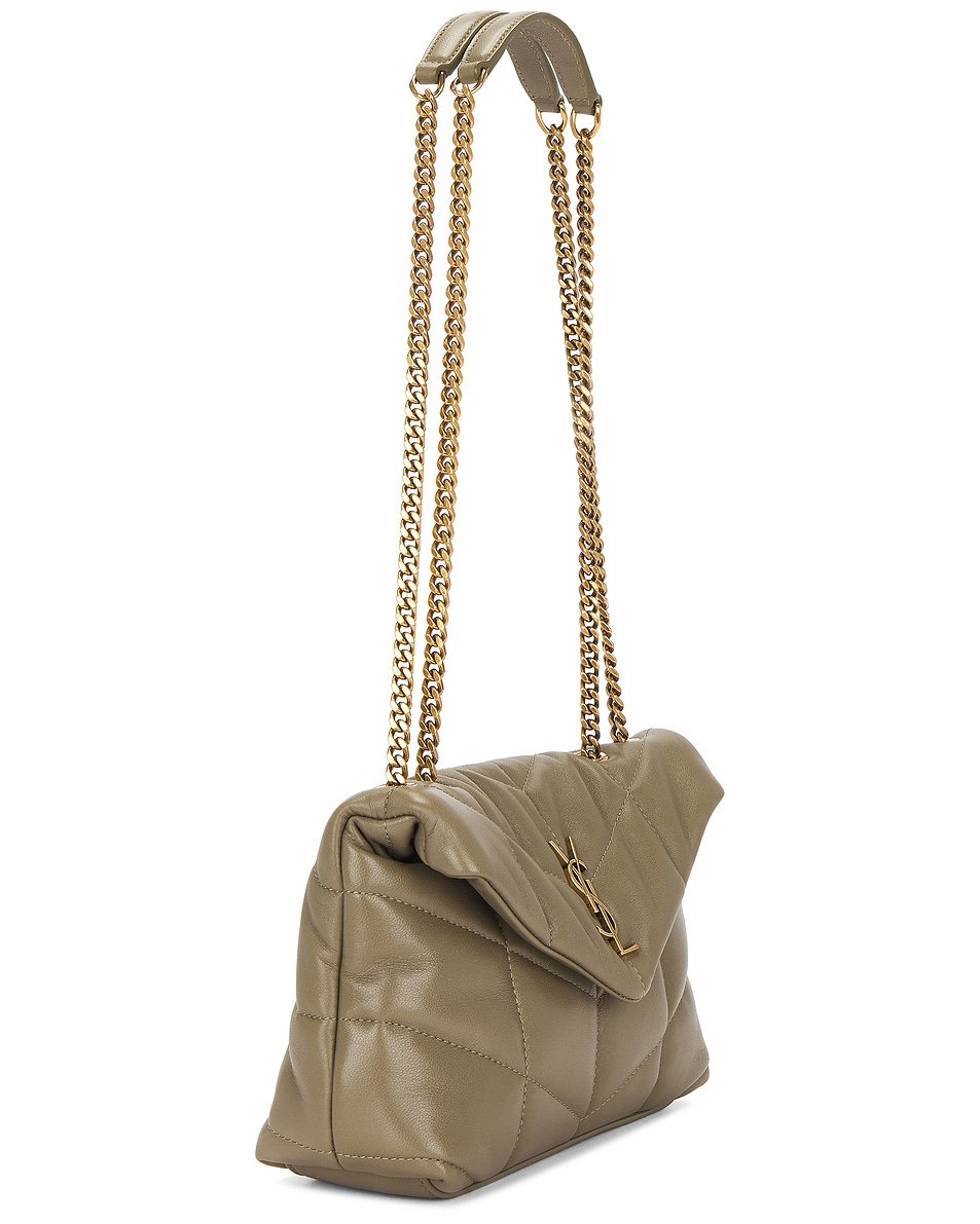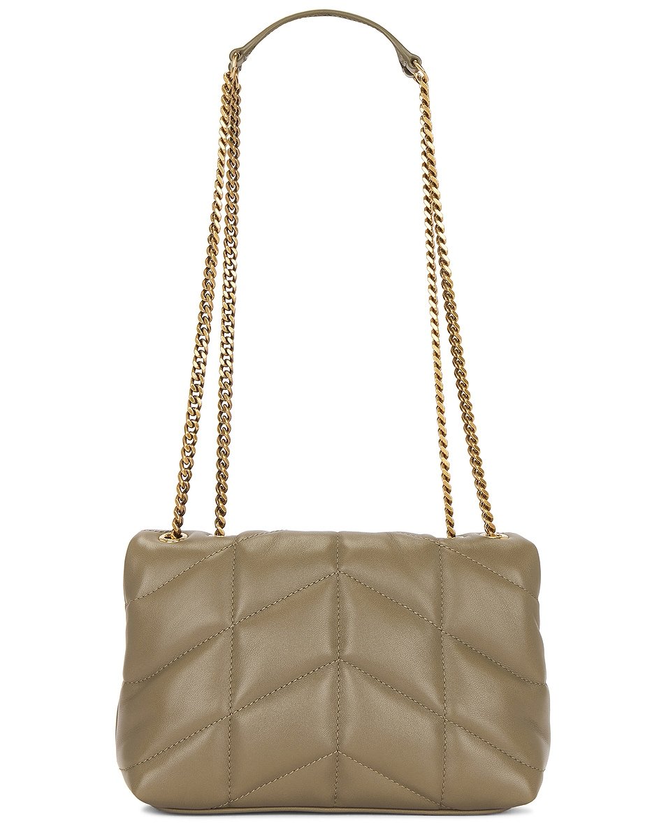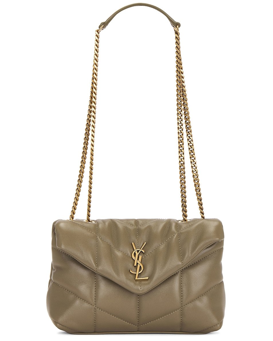 - Convertible gold-tone chain shoulder strap with dual leather reinforcements