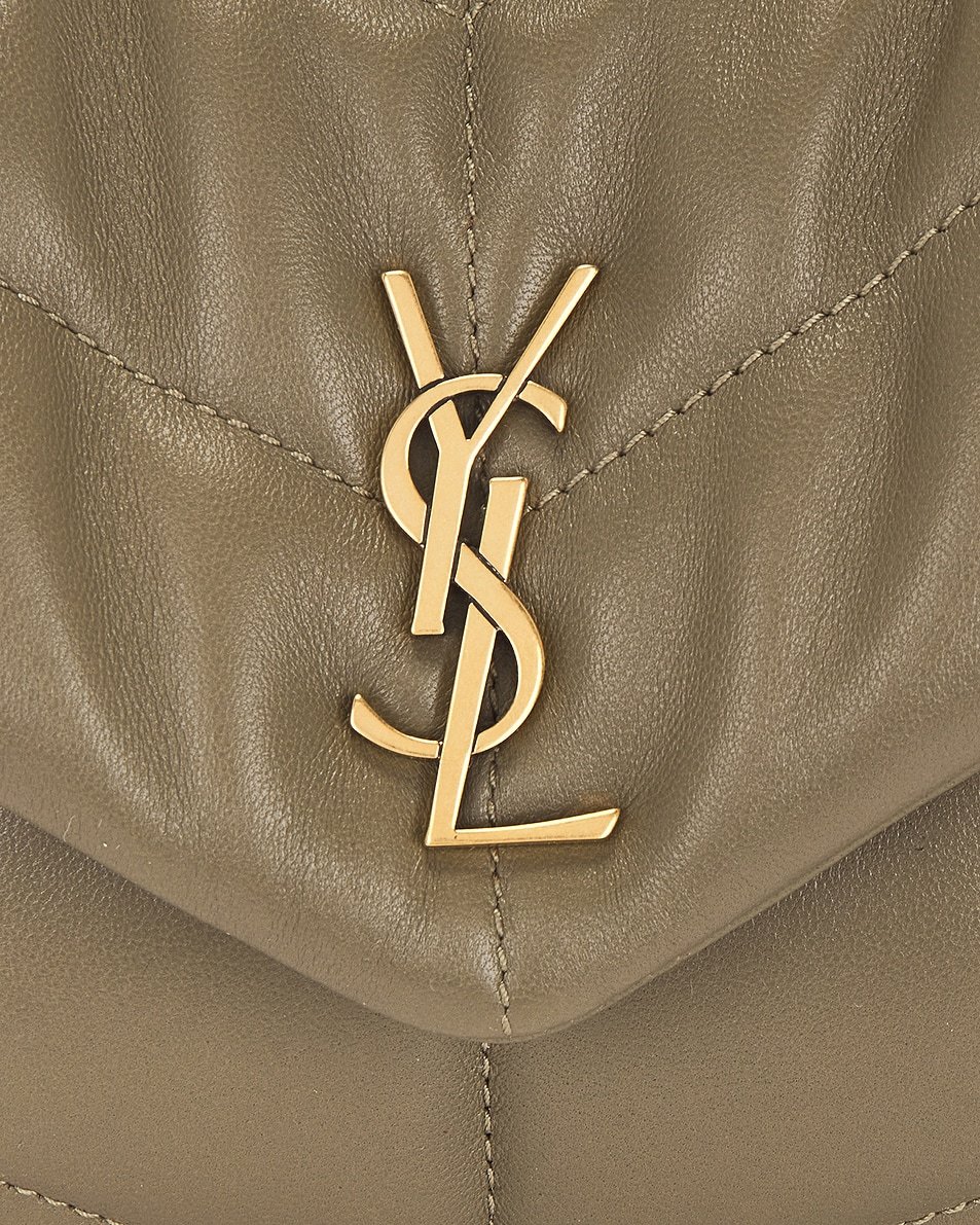 - Flap top with magnetic button closure and gold-tone cassandre logo at front