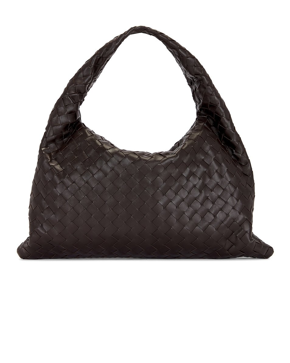 - Intrecciato calfskin leather exterior with smooth leather lining