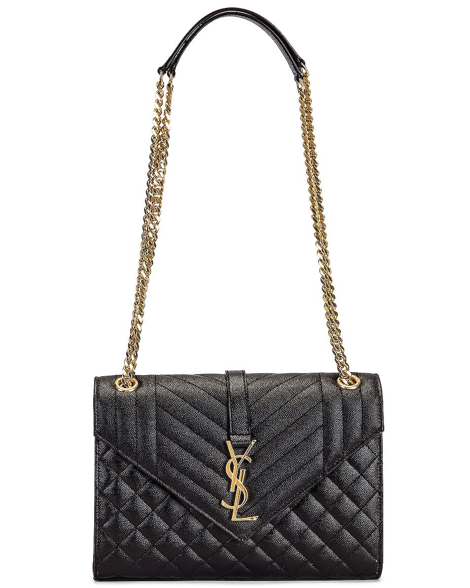 • Grain de poudré calfskin with grosgrain lining and gold-tone hardware