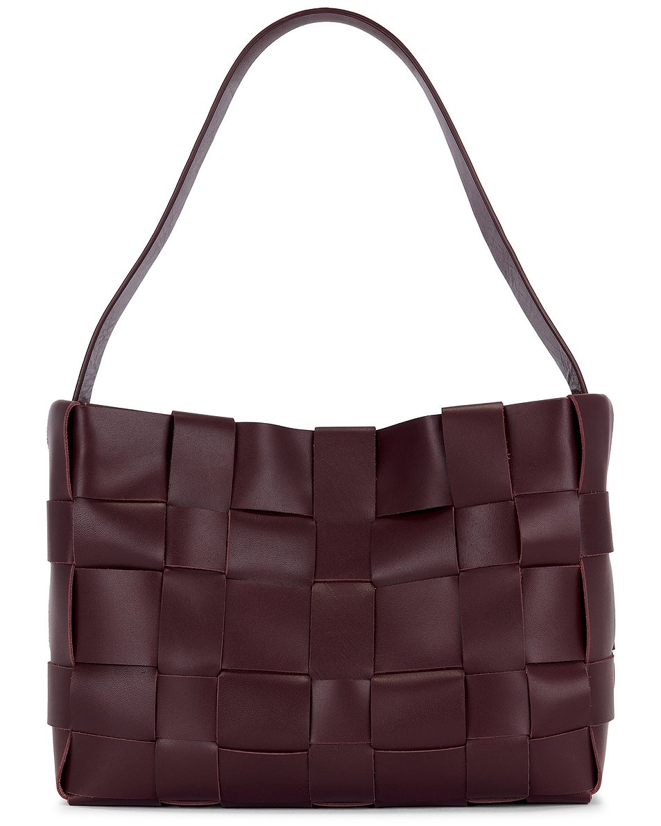 Bovine leather exterior with twill lining. Magnetic closure. One main compartment. One interior flat pocket. Measures approx 35 cm W x 24 cm H x 10 cm DShoulder strap with a 20 cm drop. Made in India. Our Style No. SGNF-WY37. Manufacturer Style No. R24-013PLM.v b